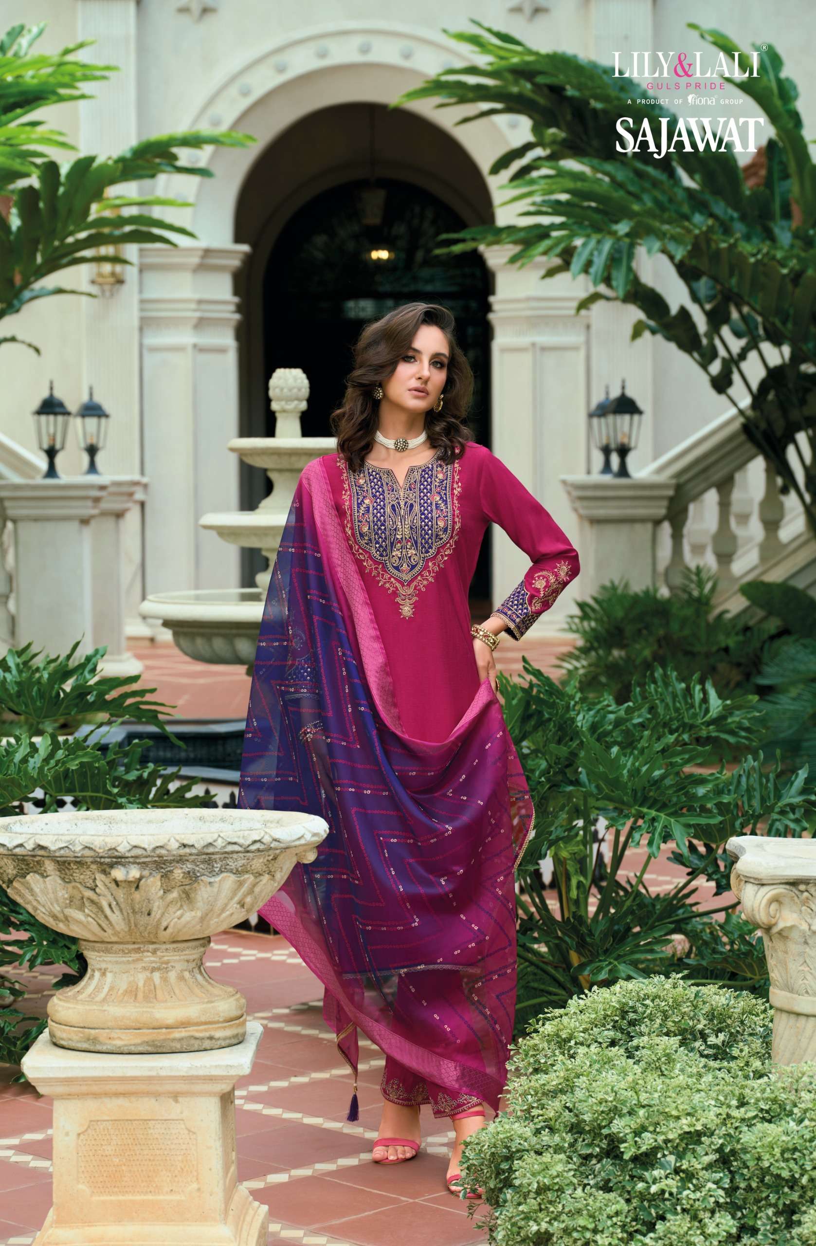 Sajawat (FESTIVAL COLLECTION) Top - Embroidery & Handwork On Viscose Fabrics With Cotton Lining. Bottom-Viscose Fabrics Pant With Embroidery Lace. Dupatta - Organza Silk Jacquard Digital Print Dupatta With Tussle & Fancy Lace. Sizes- Note:- |