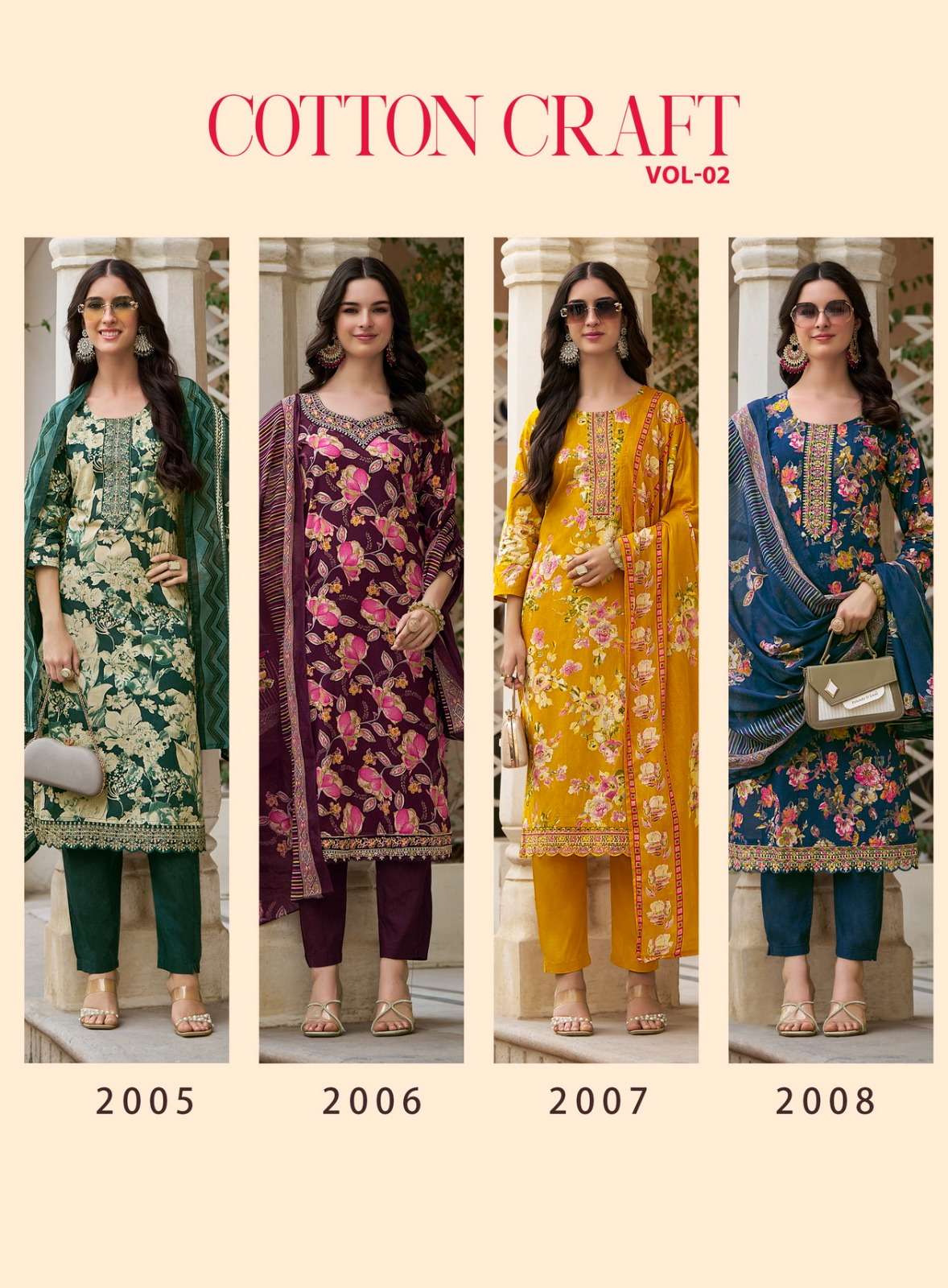 COTTON CRAFT VOL 2 TOP BOTTOM DUPATTA DETAILS TOP PANT FABRIC - PURE COTTON 60-60 DISCHARGE WITH FOIL PRINT WITH EMBROIDERY WORK DUPPTTA : MUL MUL COTTON PRINT SIZE - S M L XL XXL 3XL 4XL DESIGN - 8 |