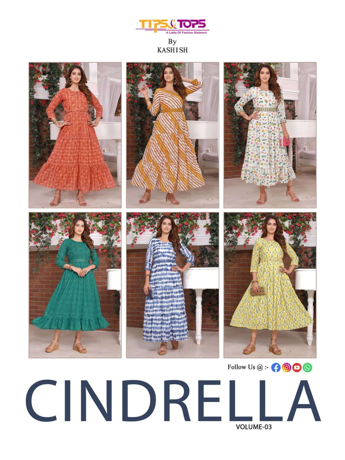 TIPS & TOPS Launching New Catalouge Catalouge Name : CINDRELLA Vol 03 Fancy Georgette Gowns Fabrics : Heavy Georgette Digital Print with Inner Spec. : Manual Work In Belt, Choli and Sleeves Sleeves type : 3/4th No.of designs : 6 Size : L40, XL42, XXL44, 3XL46 Length : 50"-52" Rate : 745 + GST 5% |